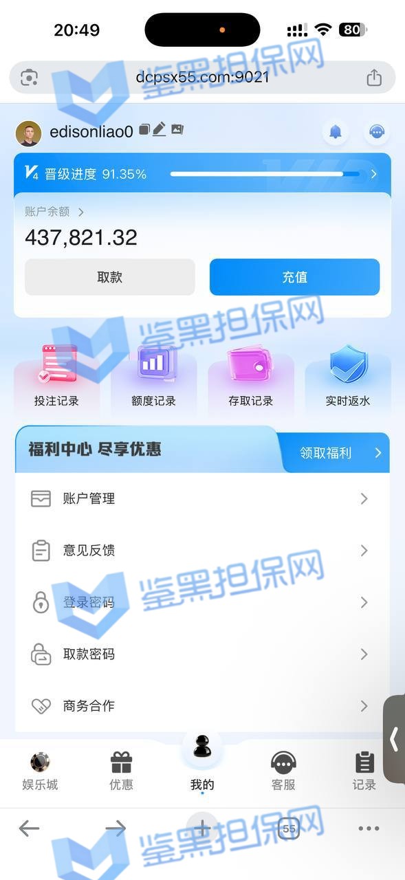 3、鉴黑担保网维权专员联系该平台相关情况,对方反馈此会员被厅方检测出来违规投注行为,网站拒绝出款表示不再欢迎进入游戏,维权专员让其提供厅方反馈的相关资讯进行复查,对方无法提供后拒绝更多沟通,可见是针对盈利较多玩家的放弃行为,但余额没有出款完毕行为与黑平台无异,还请广大玩家远离!!