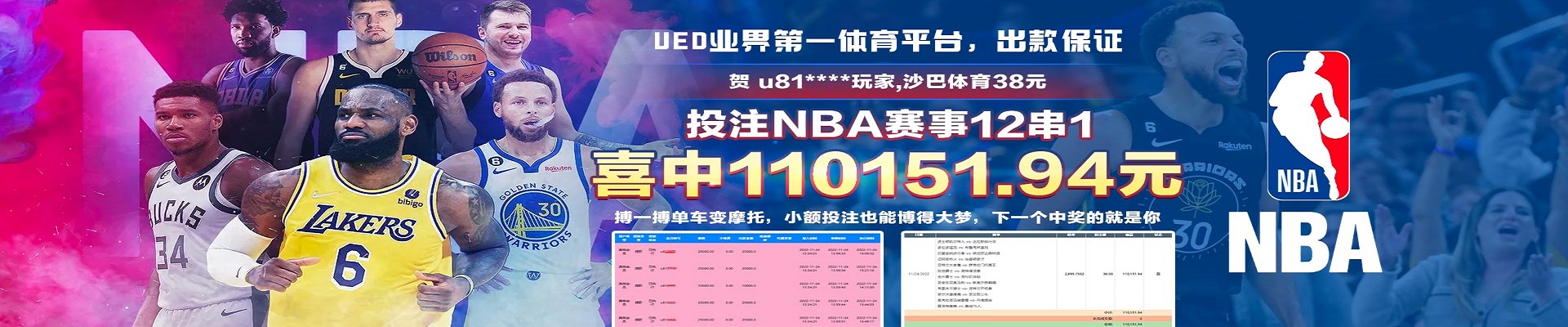 投注NBA赛事12串1,喜中110151.94元!!!!