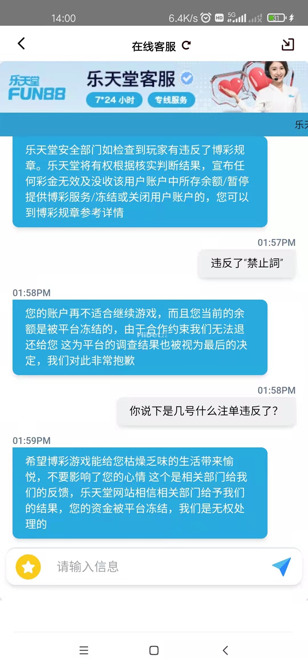 这平台的账号玩过一段时间,记得当时也是输的多。后面有段时间没玩了,最近回去充了点钱玩了几把,运气不错盈利了一点,结果过了几天号就被封了。我就买了几场滚球比赛,问它理由就说非法投注,叫它拿点证据出来就说无法提供了,这狗平台连几千块都黑,真的是一点良心都没有了。